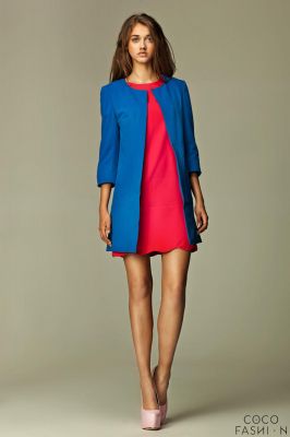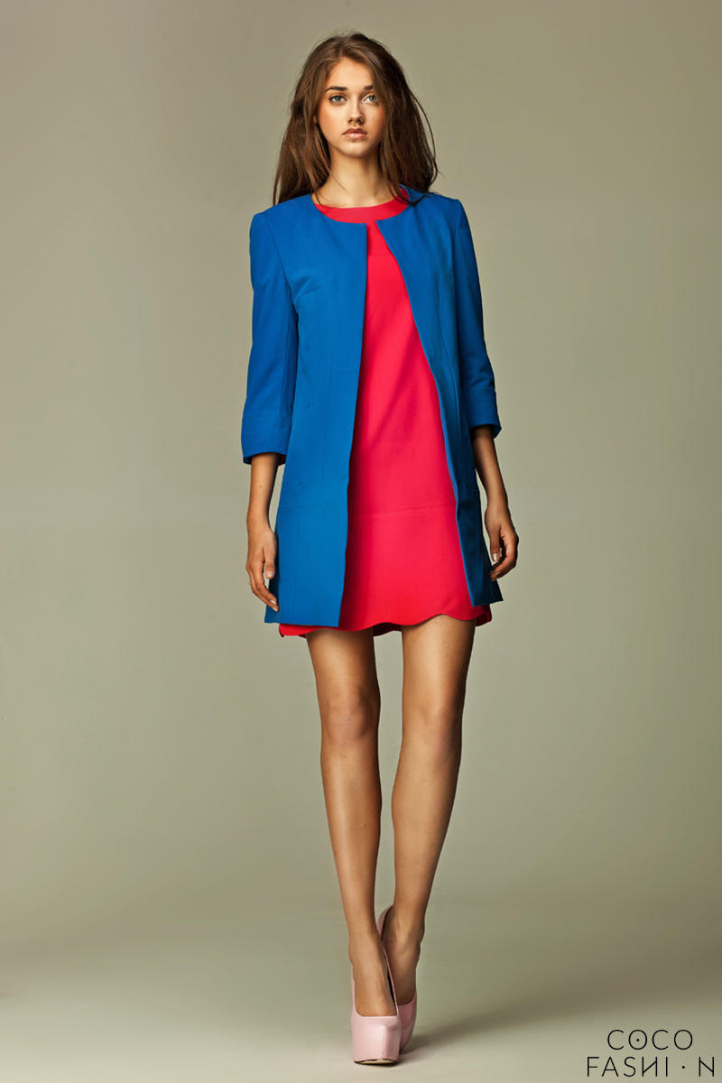 Niebieski Elegancki Długi Żakiet z Rękawem 3/4