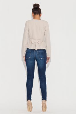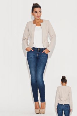 Stylowy Beżowy Żakiet na Suwak z Kokardą na Plecach