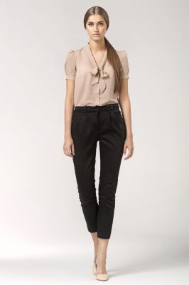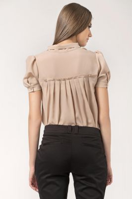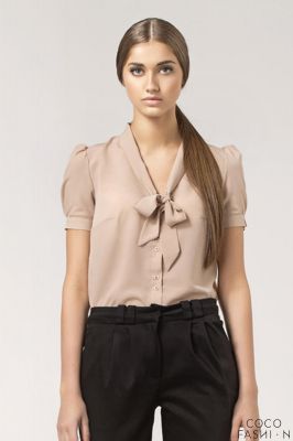 Stylowa Beżowa Bluzka z Kokardą pod Szyją