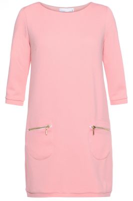 Różowa Mini sukienka z Rękawem 3/4 i Kieszeniami