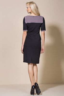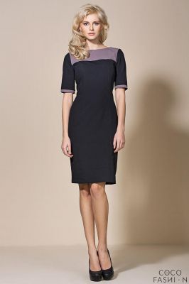 Czarno&mocca Prosta Sukienka z Kontrastowym Karczkiem