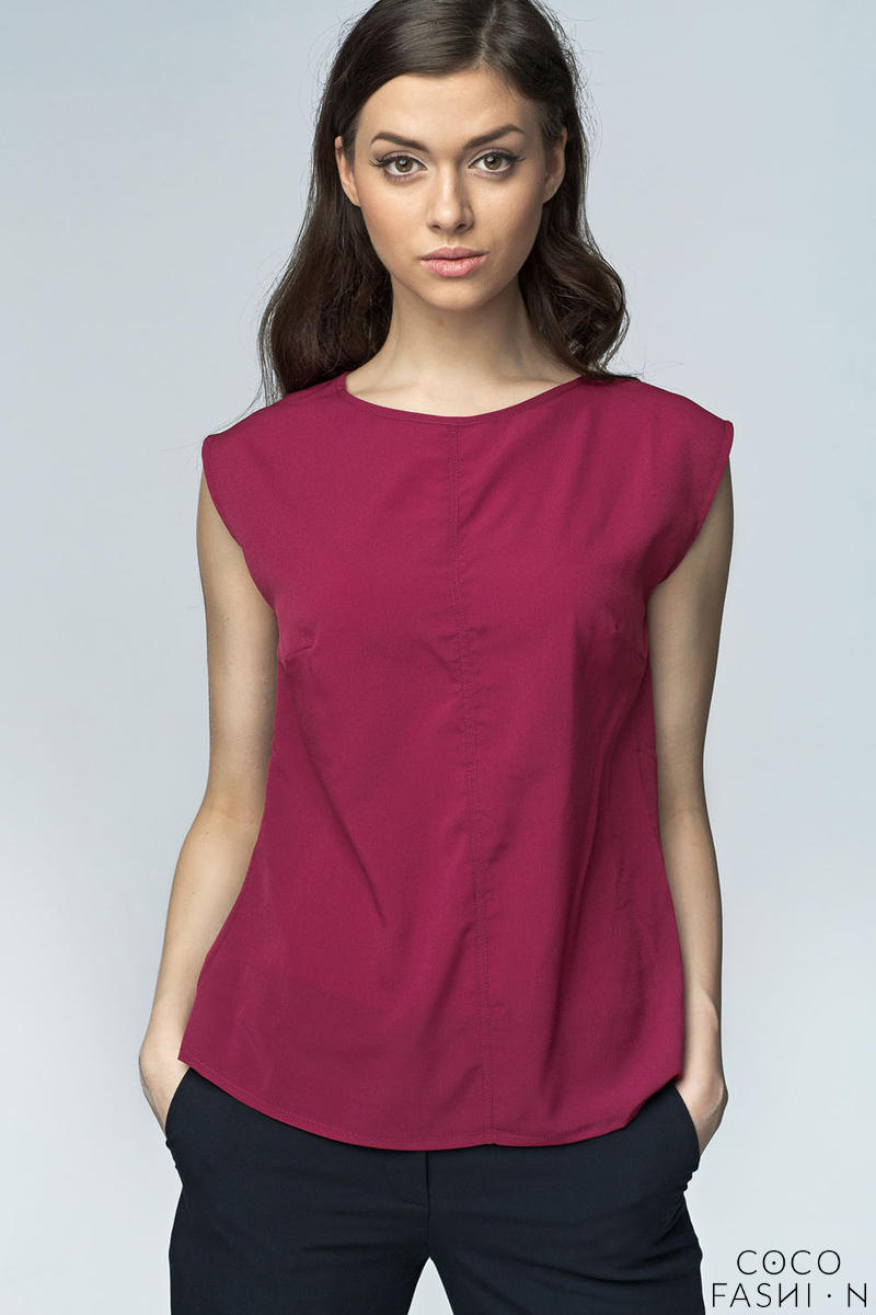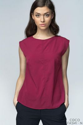 Bordowa Lekka Wiosenna Bluzka bez Rękawów