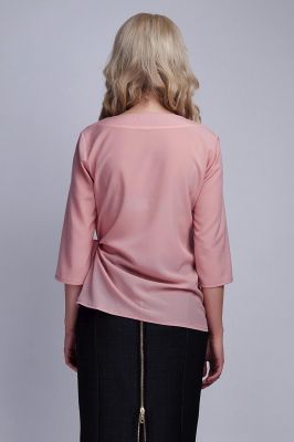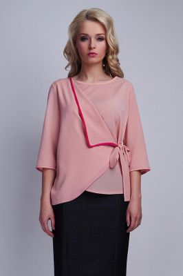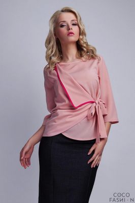 Różowa Bluzka z Kontrastową Lamówką i Wiązaną Kokardą
