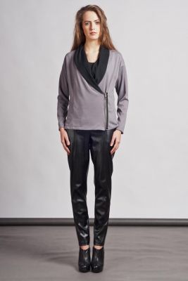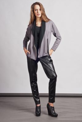 Szary Kardigan z Dużym Kołnierzem i Suwakiem