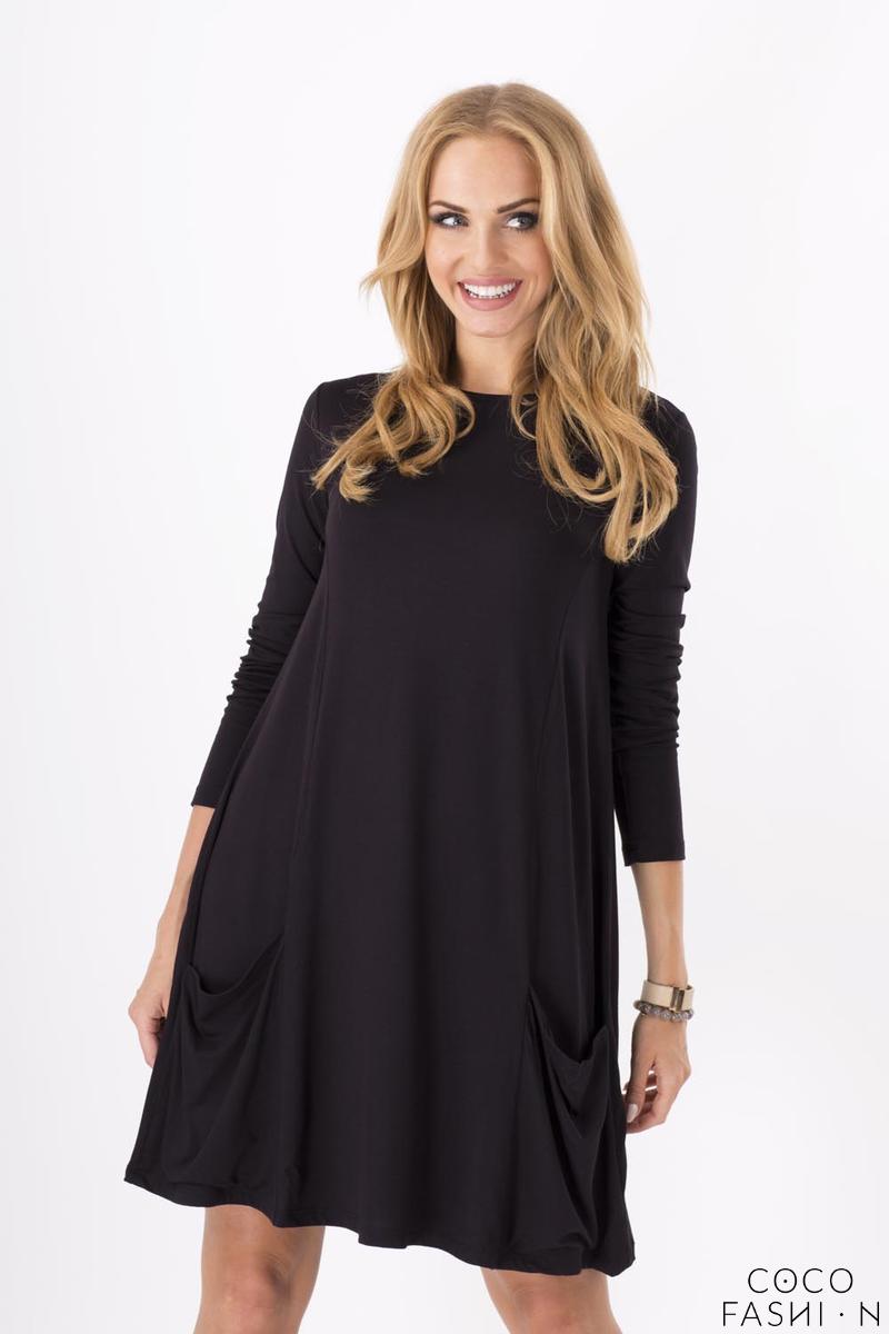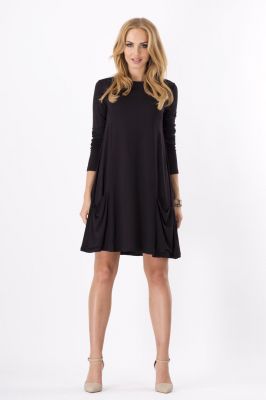 Czarna Dresowa Rozkloszowana Sukienka z Kieszeniami