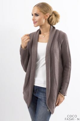 Cappuccino Ażurowy Kardigan z Asymetrycznymi Połami