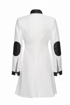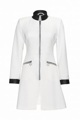 Biały Zasuwany Płaszcz ze Skórzanymi Detalami