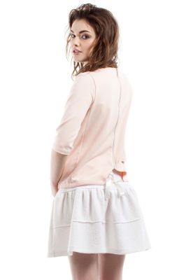 Ecru Czarna Rozkloszowana Mini Spódnica