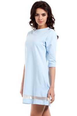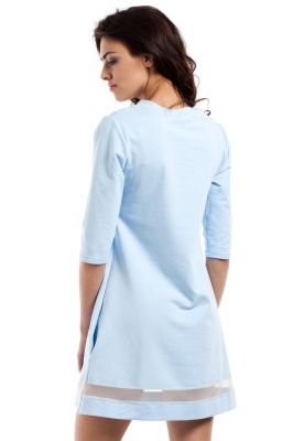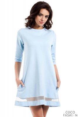 Błękitna Rozkloszowana Sukienka z Przezroczystym Paskiem