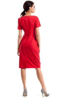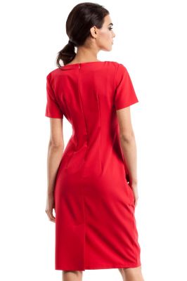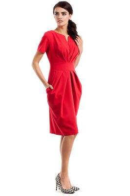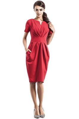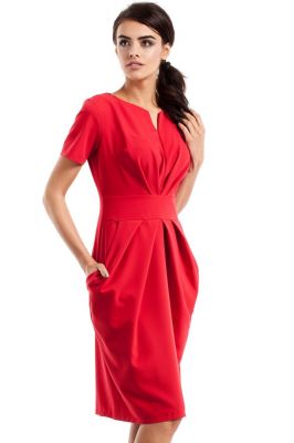 Czerwona Marszczona Sukienka z Kieszeniami