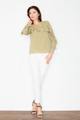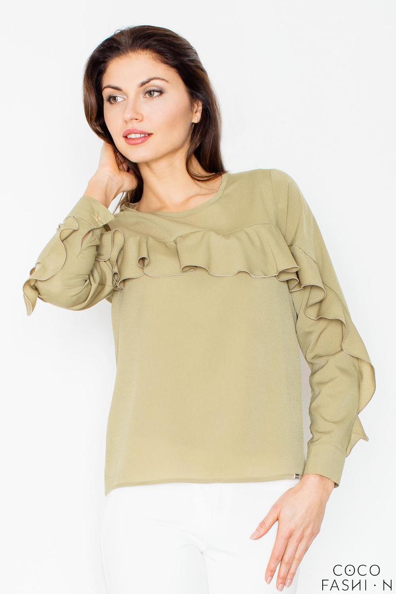 Zielona Bluzka z Długim Rękawem z Falbanką