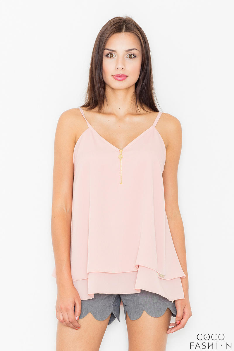 Różowa Zwiewna Bluzka na Cienkich Ramiączkach