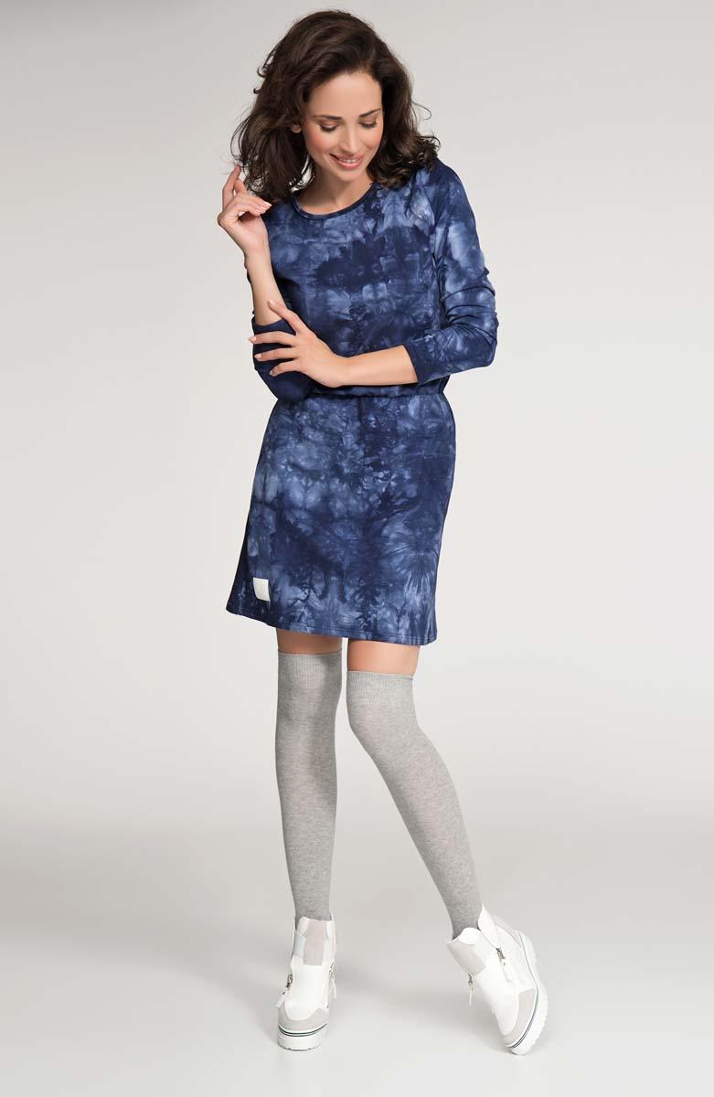 Niebieska Sukienka Marmurkowa z Rękawem 3/4