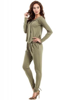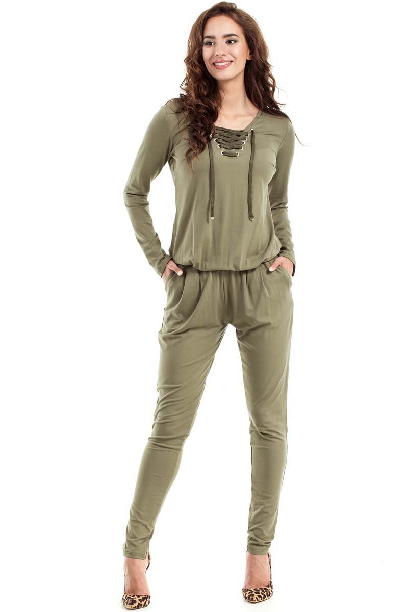 Khaki Kombinezon Sznurowany z Przodu