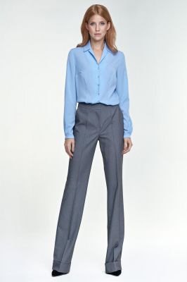 Szare Eleganckie Spodnie z Szerokimi Nogawkami