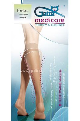 Podkolanówki damskie przeciwżylakowe o gładkim splocie oczek, ze stopniowym uciskiem, poprawiające krążenie. Testowane klinicznie, dając poczucie komfortu i elegancji. I stopień ucisku: 18 mm/Hg. Polecane szczególnie dla osób prowadzących siedzący tryb życia, w wielogodzinnej pracy stojącej, narażonych na długie podróże samolotem lub samochodem, odczuwających ciężkość i zmęczenie nóg, mających drobne żylaki, przy lekkich zaburzeniach krążenia, mających wrodzone skłonności do powstawania żylaków. Skład: 84% poliamid, 16% elastan.