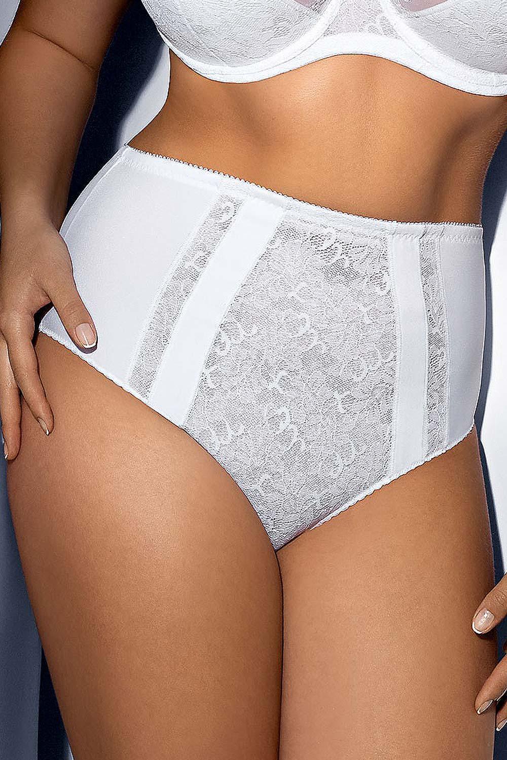 Eleganckie, zabudowane figi damskie o klasycznej linii, idealnie podkreślają biodra. Model z wyższym stanem. Figi wykonane z gładkiej mikrofibry. Doskonale przylegają do ciała i korygują sylwetkę. Z przodu wstawki z uroczej, ażurowej koronki. Skład: 52% poliamid, 13% elastan, 30% poliester, 5% bawełna.