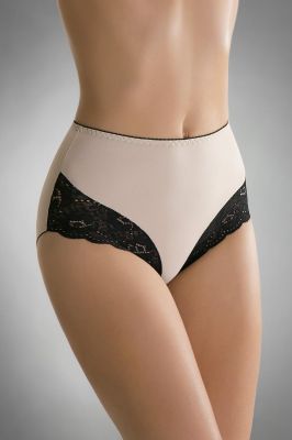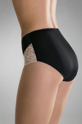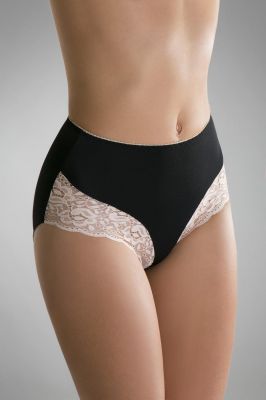 Wygodne figi wykonane z wysokiej jakości dzianiny, przyjemnej i miękkiej w dotyku. Eleganckie wstawki z koronki nadają modelowi delikatności. Ładnie układający się na pośladkach model posiada również bardzo wysoki stan zgrabnie korygujący brzuch. Dzięki wyjątkowej konstrukcji nie obciskają. Skład: 85% poliamid, 15% elastan.