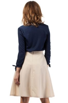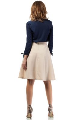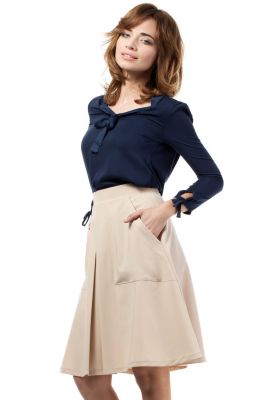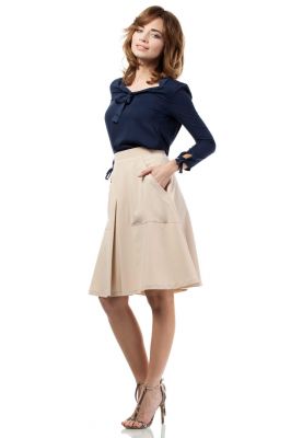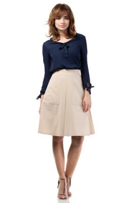 Beżowa Trapezowa Spódnica z Kieszeniami