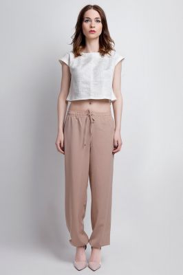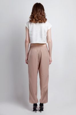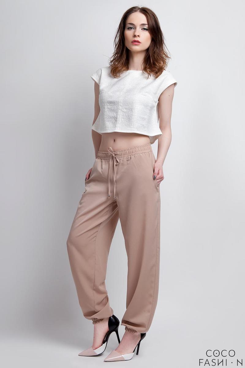 Beżowe Szerokie Spodnie Wiązane w Pasie