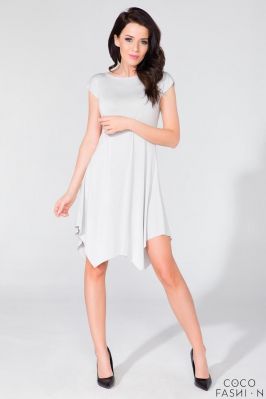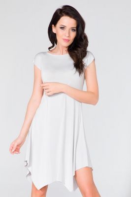 Biała Zwiewna Sukienka z Asymetrycznym Dołem