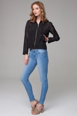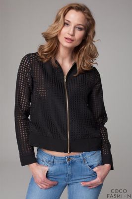 Czarna Krótka Cienka Kurteczka na Suwak z Siateczki
