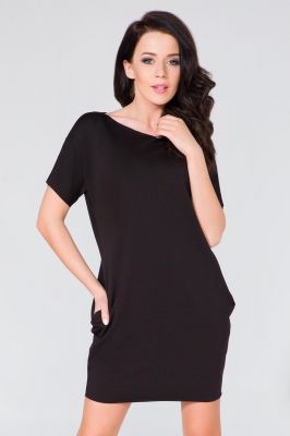 Czarna Prosta Mini Sukienka z Kieszeniami