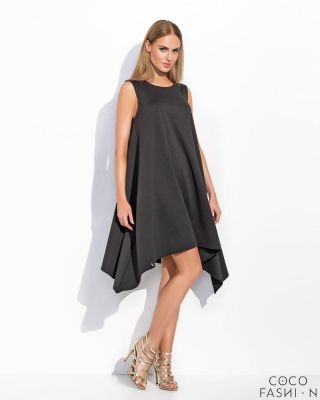 Czarna Sukienka bez Rękawów z Asymetrycznym Dołem