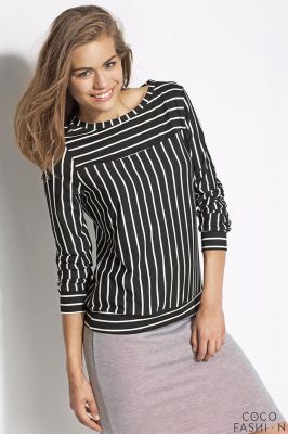 Czarno&biała Codzienna Bluzka w Paski z Rękawem 3/4