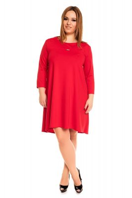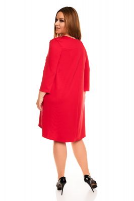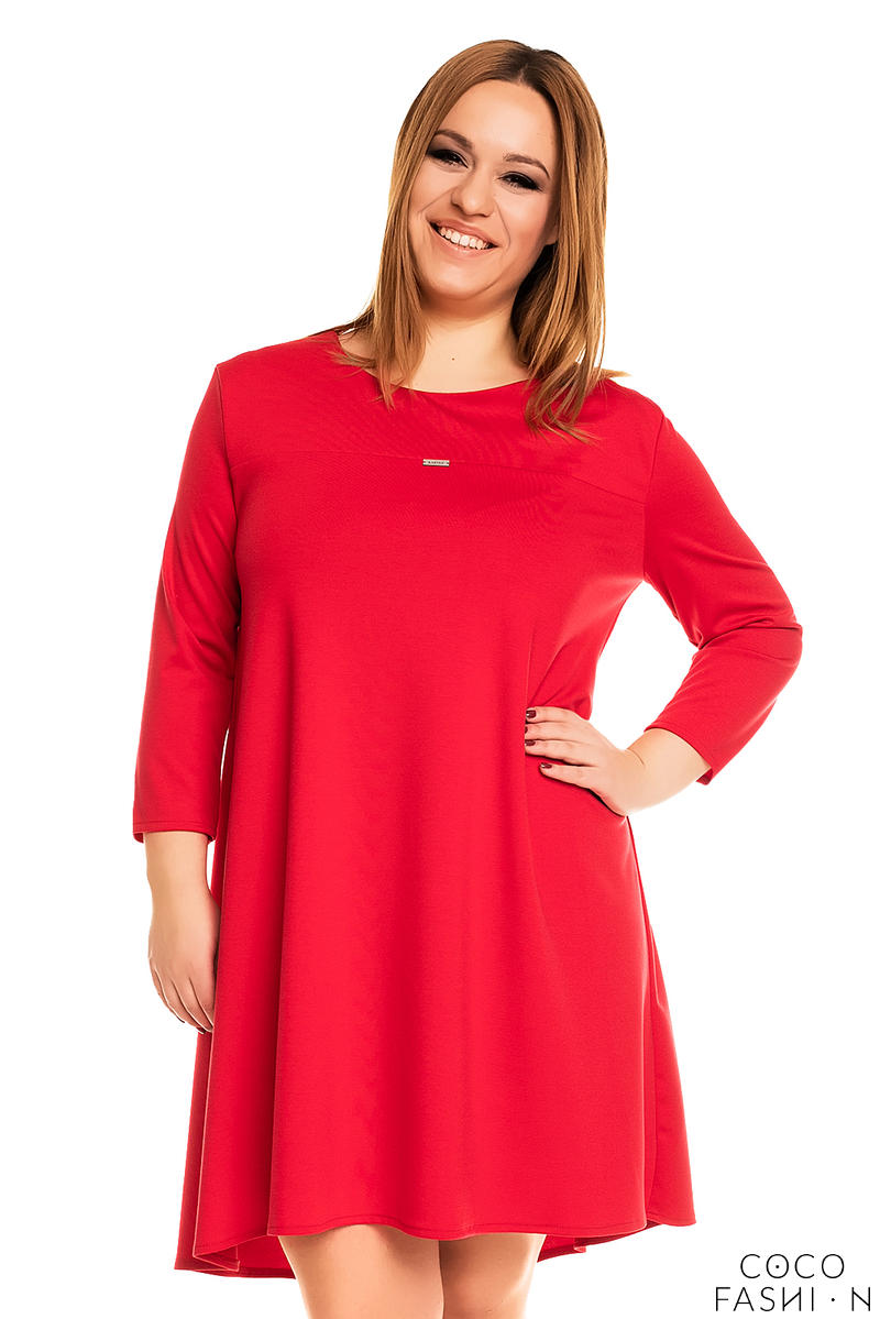 Czerwona Rozkloszowana Sukienka z Rękawem 3/4 PLUS SIZE