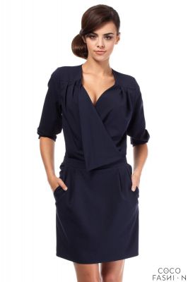 Strona główna41Granatowa Elegancka Sukienka z Oryginalnym Dekoltem