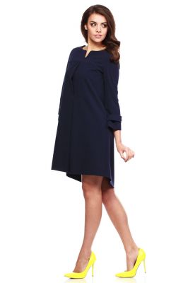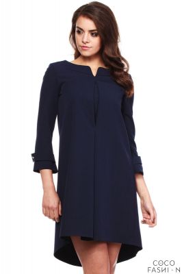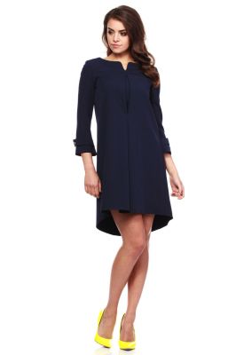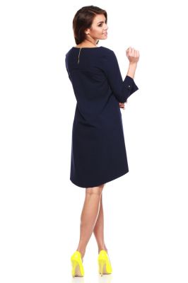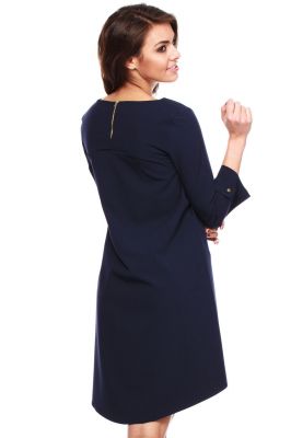 Granatowa Wyjściowa Szeroka Sukienka z Rękawem 3/4