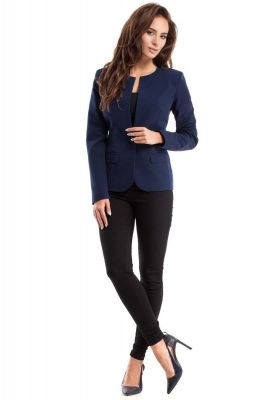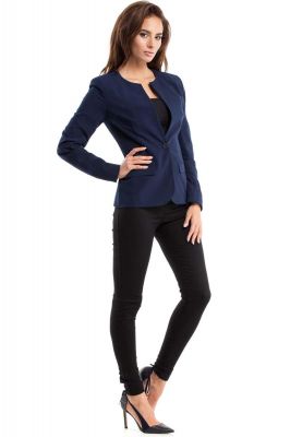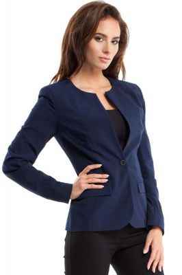 Granatowy Żakiet Klasyczny na Jeden Guzik