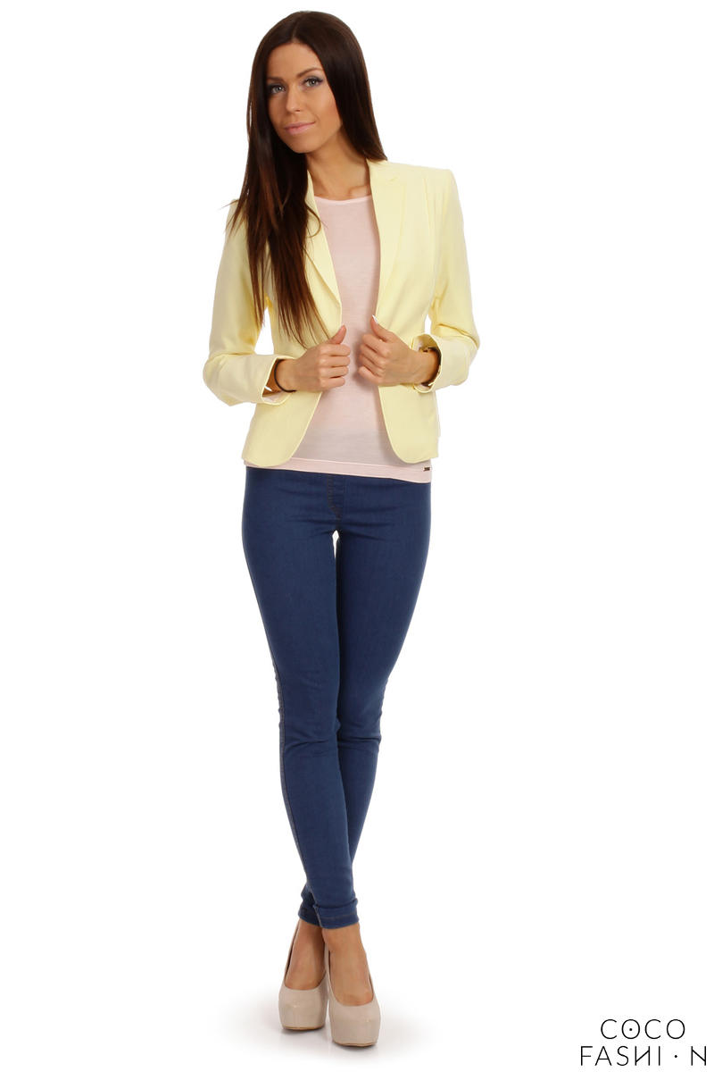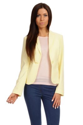 Klasyczny Krótki Żakiet na Jeden Guzik -Żółty