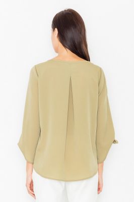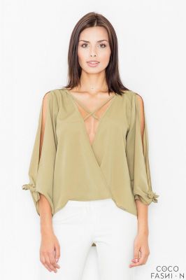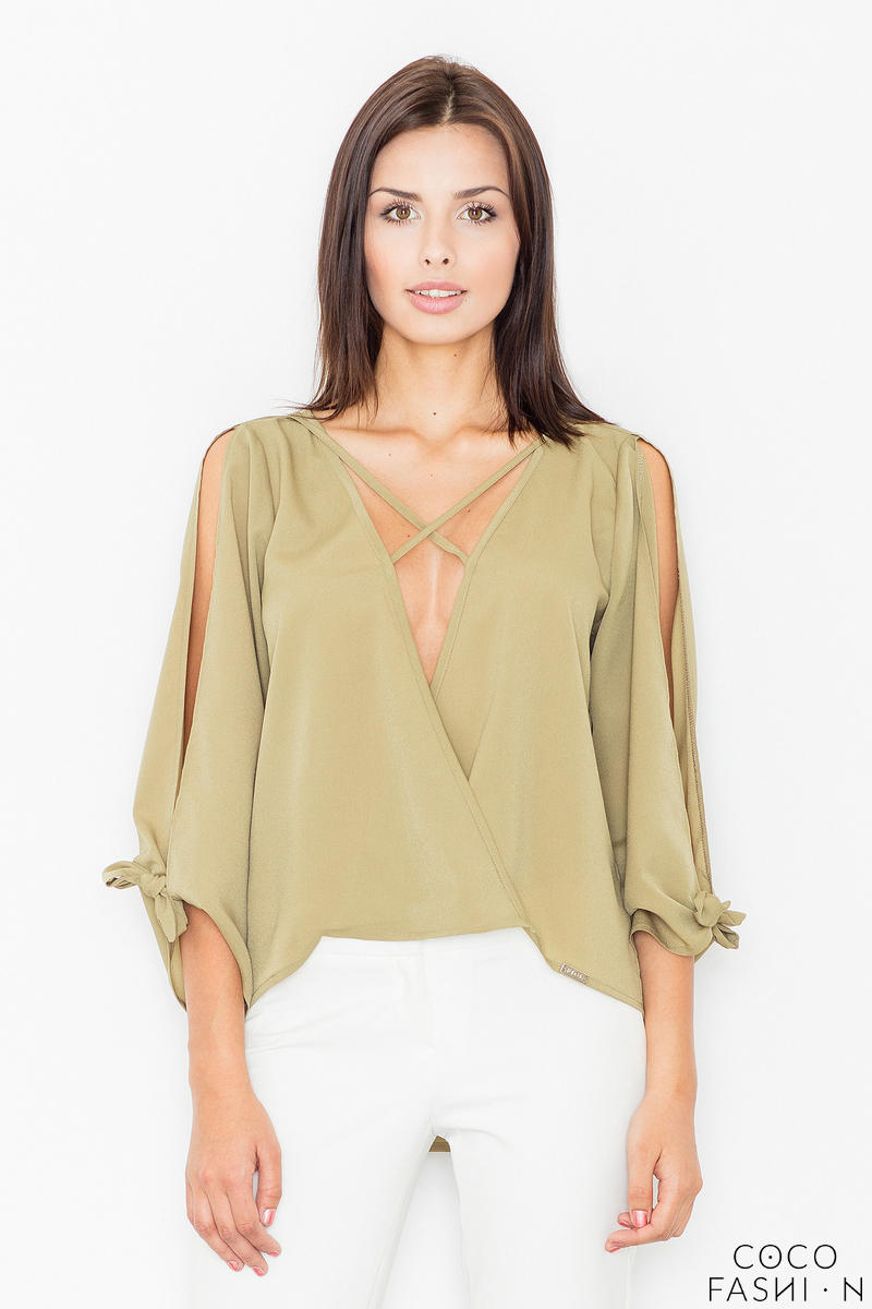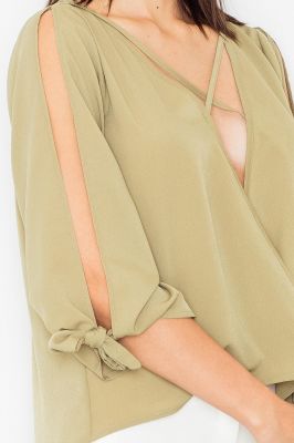 Oliwkowa Bluzka z Rozcięciami na Rękawach