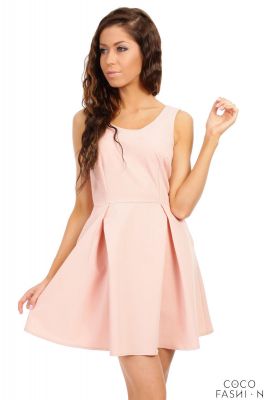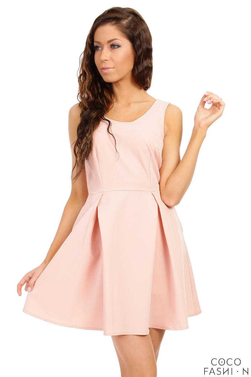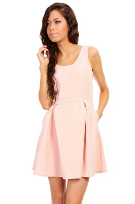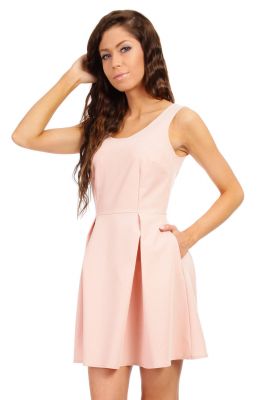 Pudrowa Rozszerzana Sukienka z Dekoltem