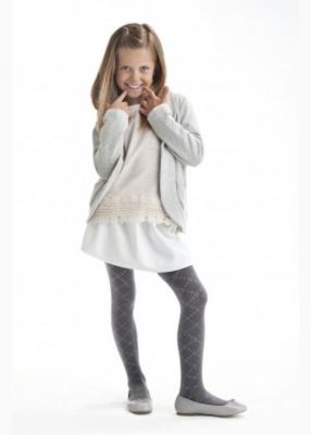 Wzorzyste rajstopy dziewczęce wykonane z mikrofibry. Skład surowcowy: 94% Poliamid, 6% Elastan. Grubość 40 DEN.