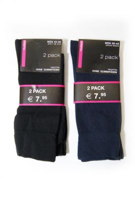 Skarpety męskie gładkie zapakowane po 2 pary. Skład surowcowy: Bawełna 70%, Poliamid 30%.