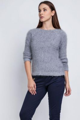 Czarujący sweterek uszyty z przyjemnej w dotyku przędzy. Mięciutki i delikatny, wygodnie elastyczny. O średniej grubości. Dostępny w kilku stylowych kolorach do wyboru. Fason lekko dopasowany, wygląda kobieco i elegancko. Subtelny dekolt pod szyją. W dolnej części ściągacze. Sweterek doskonale łączy się zarówno z jeansami, jak i gustowną spódniczką. Polski producent.